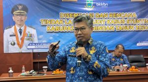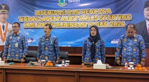 Kepala DPPKBP3A Kab. Kuningan mewakili PJ Bupati Kuningan, membuka Kegiatan Desiminasi dan Rencana, Tindak lanjut audit kasus setunting, Kabupaten Kuningan Tahun 2024. Serta sekaligus menyampaikan/membacakan sambutan PJ Bupati Kuningan terkait dengan penanggulangan kasus Stunting di Kab. Kuningan.