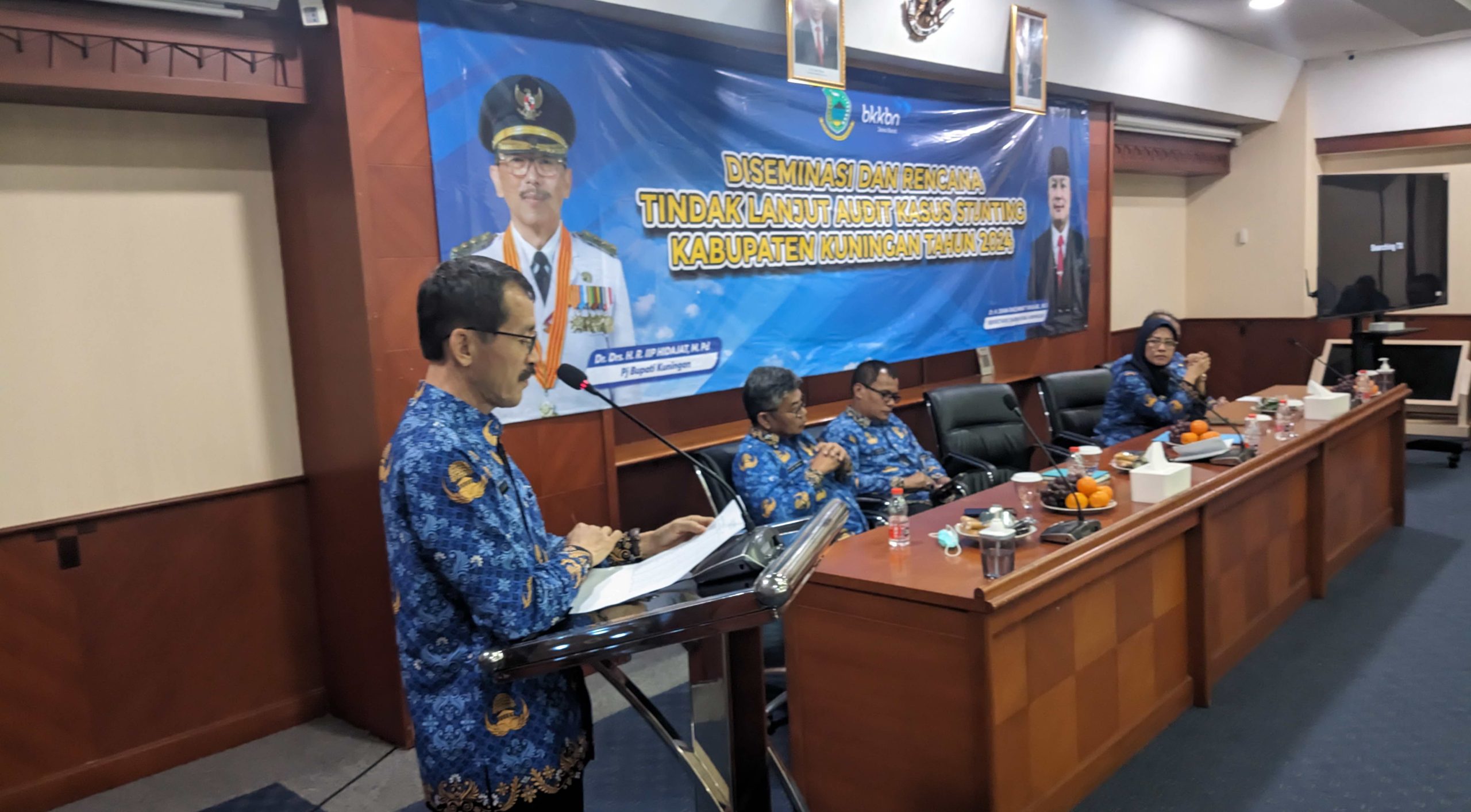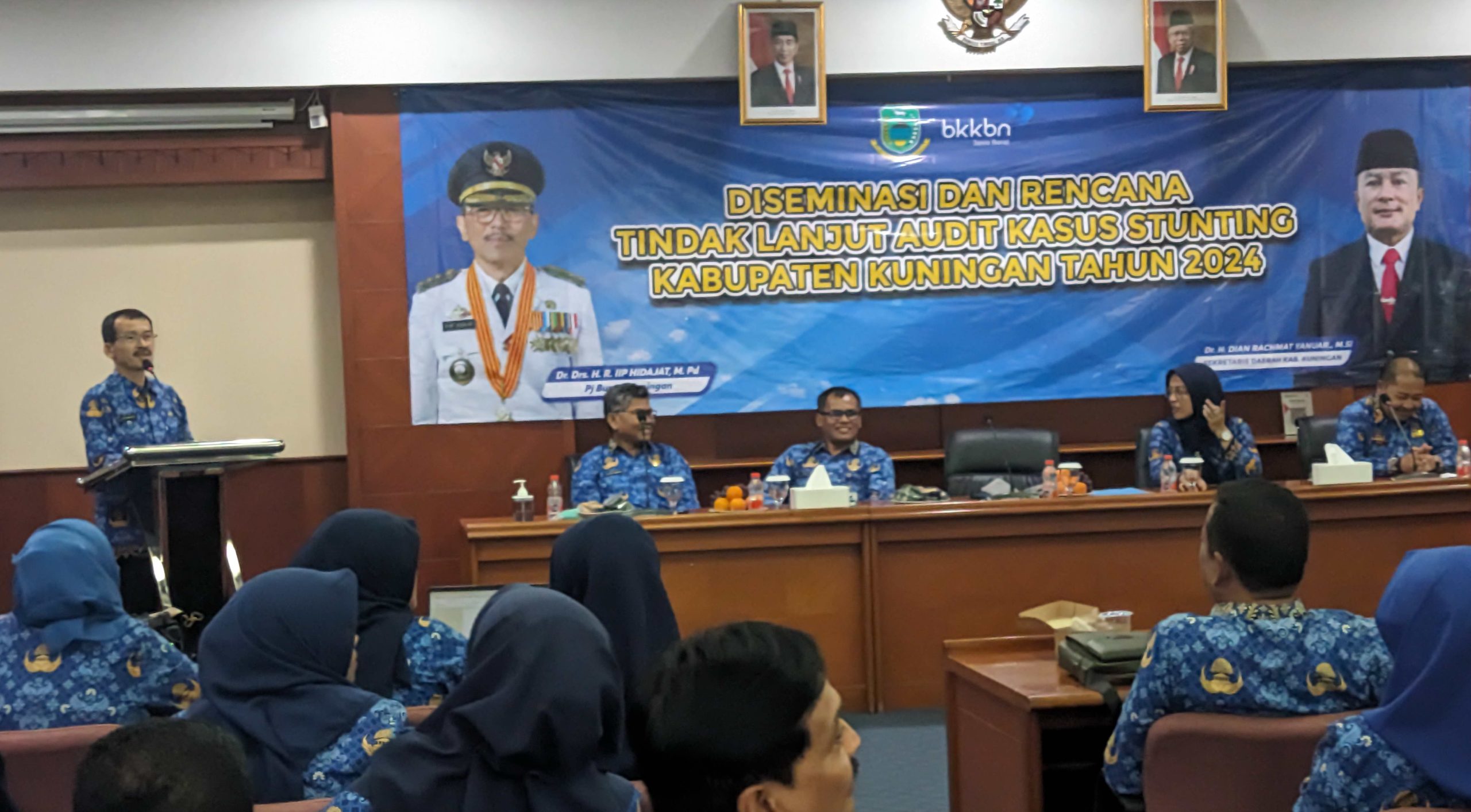 Kepala DPPKBP3A Kab. Kuningan mewakili PJ Bupati Kuningan, membuka Kegiatan Desiminasi dan Rencana, Tindak lanjut audit kasus setunting, Kabupaten Kuningan Tahun 2024. Serta sekaligus menyampaikan/membacakan sambutan PJ Bupati Kuningan terkait dengan penanggulangan kasus Stunting di Kab. Kuningan.